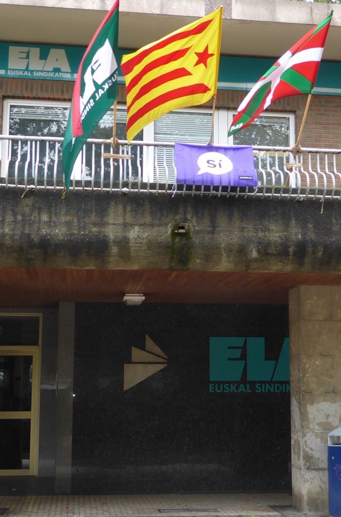 Hoy, aprovechando que se celebra La Diada, el Comité Comarcal de Donostia ha querido mostrar su solidaridad y apoyo a Catalunya para que el referéndum del 1 de octubre sea un éxito.