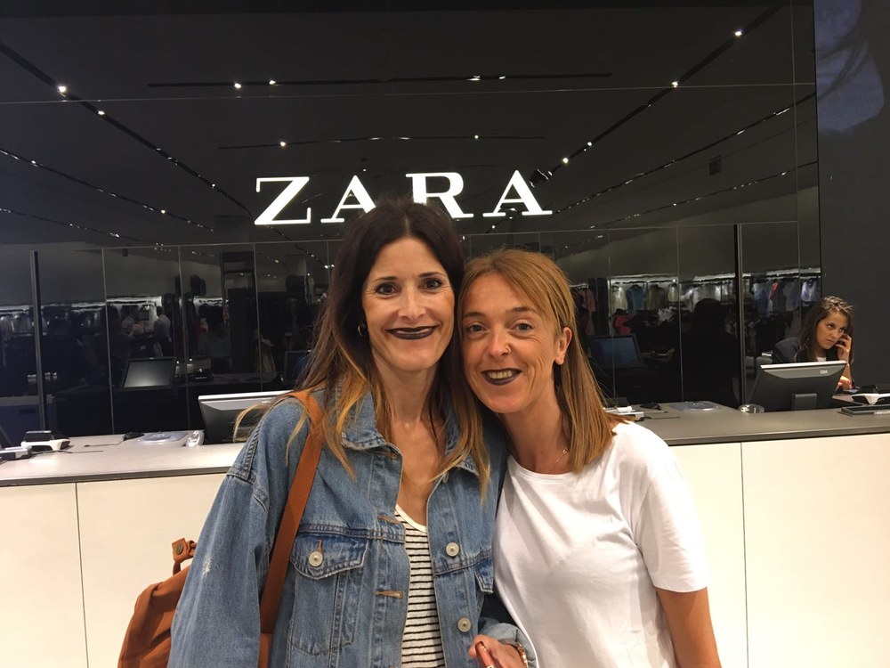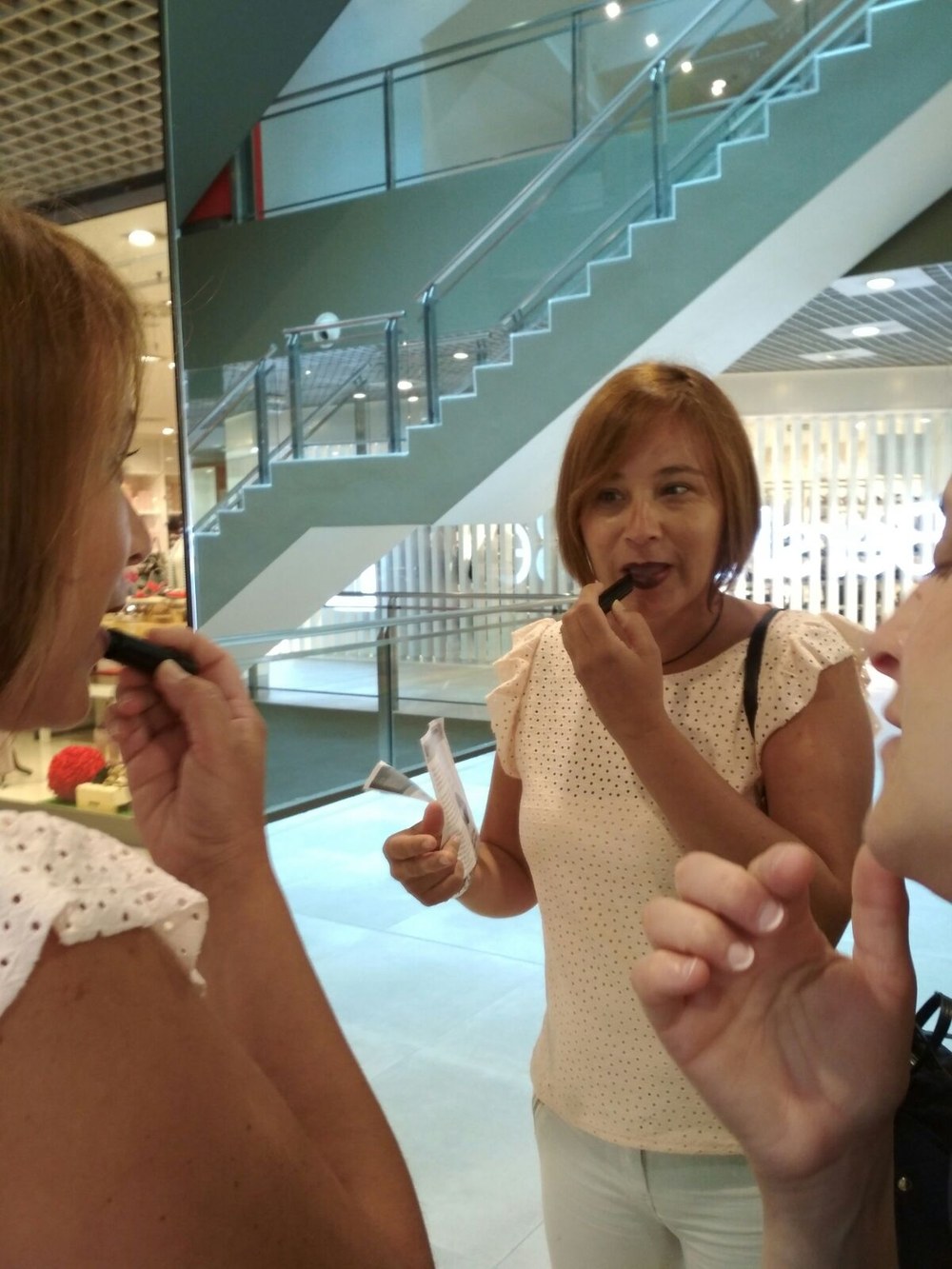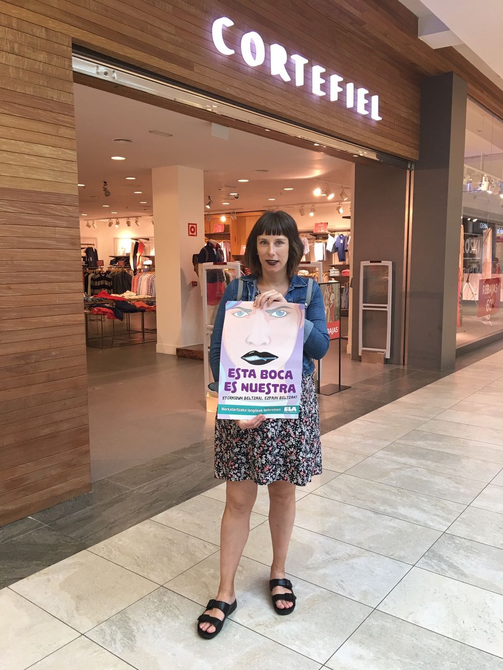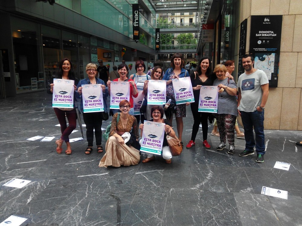 Las trabajadoras del textil se han pintado los labios de negro en favor del convenio de comercio de Gipuzkoa