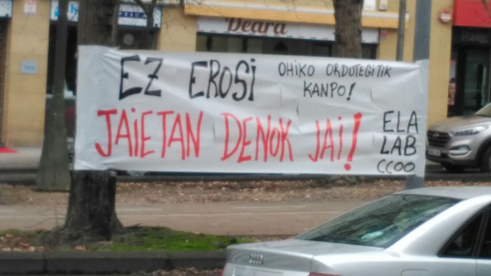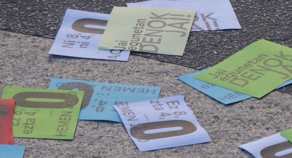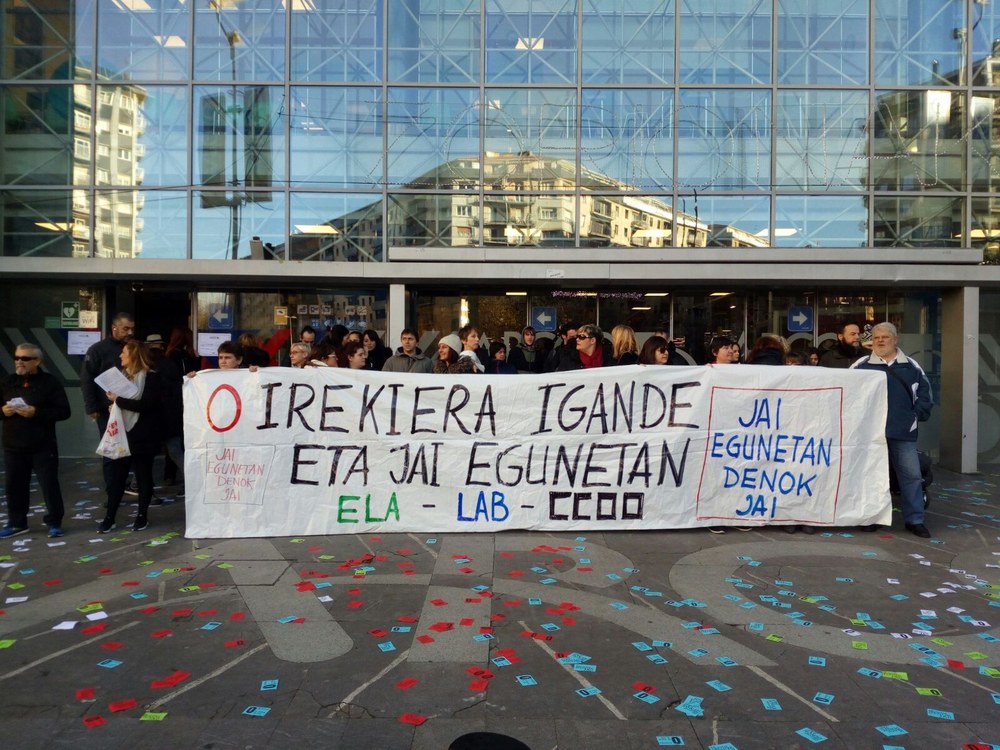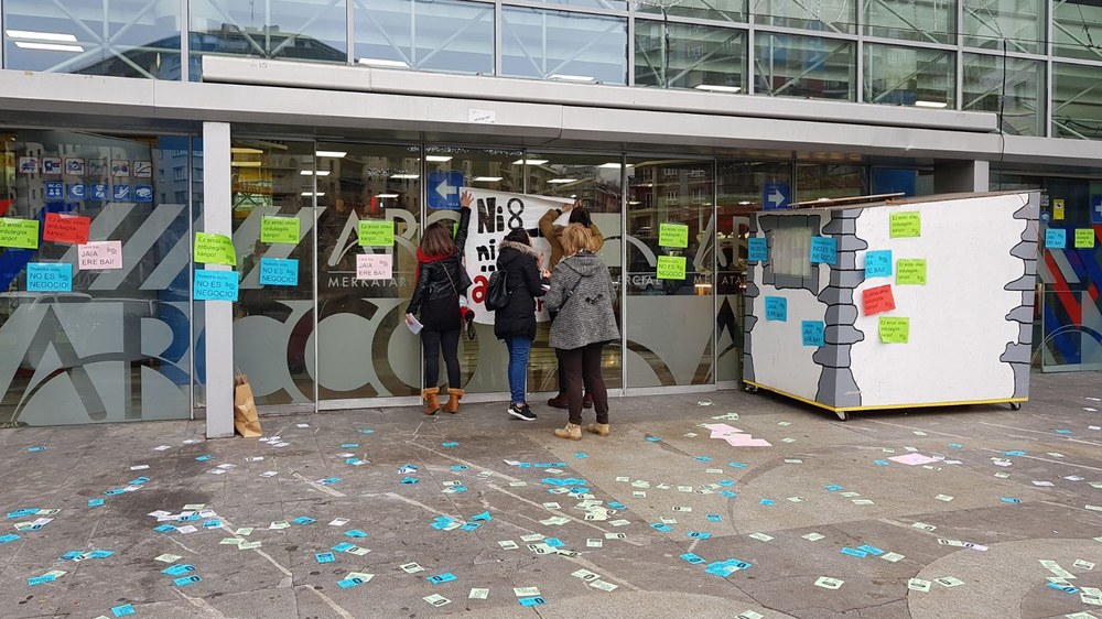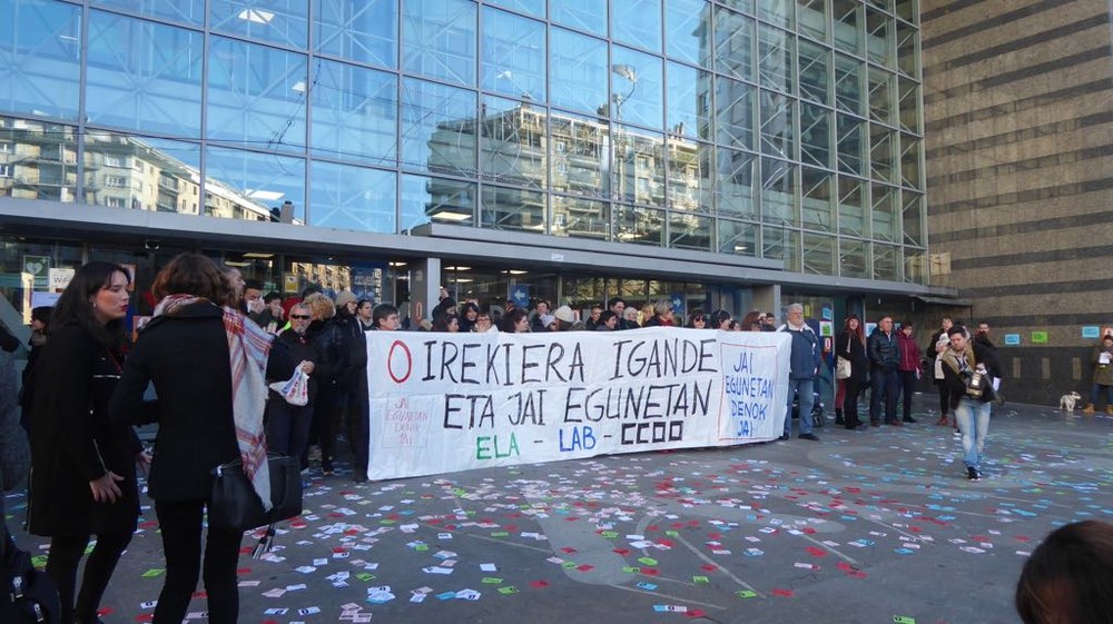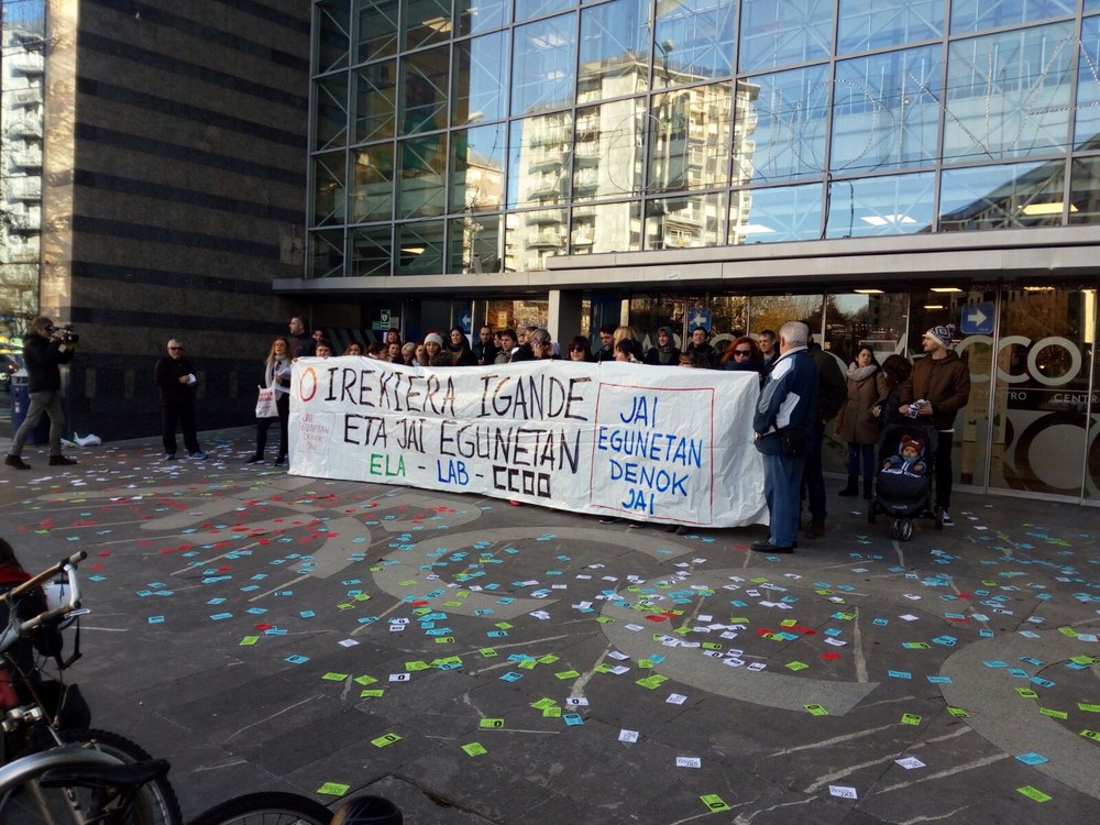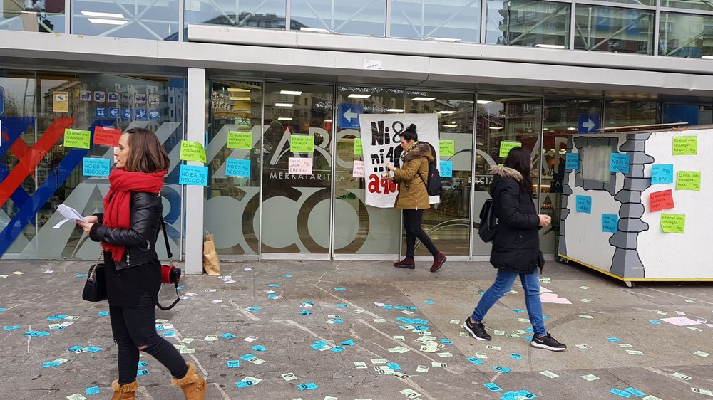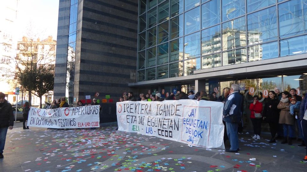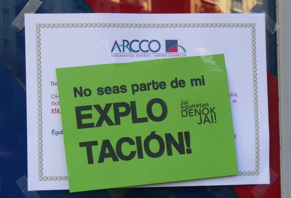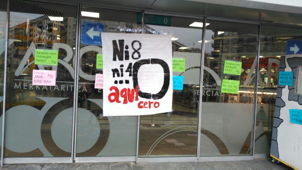 Sabiendo que algunas tiendas del centro comercial ARCCO, en Donostia, tenían intención de abrir en Nochebuena, convocamos movilizaciones a favor de las cero aperturas en domingos y festivos, porque esos días son para descansar, porque tener que abrir también en festivos perjudica al pequeño comercio, porque no genera empleo y porque el modelo de sociedad basado en el consumismo daña la vida.