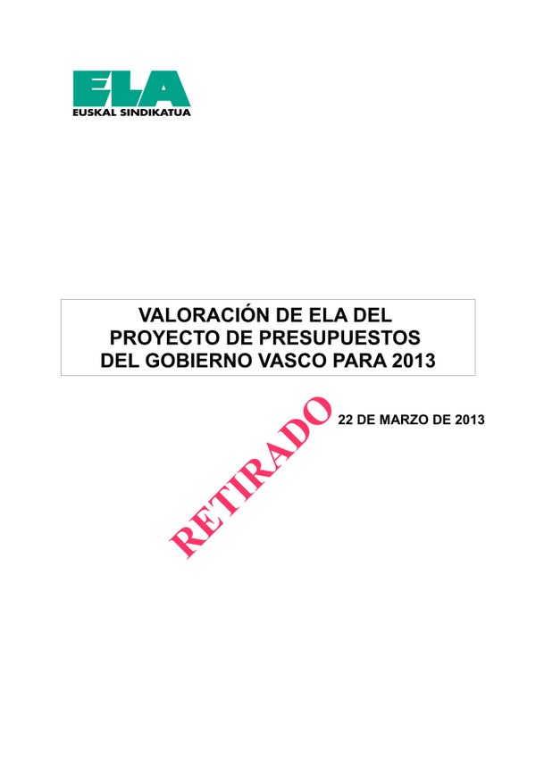 PROYECTO DE PRESUPUESTOS DEL GV PARA 2013 (RETIRADO)