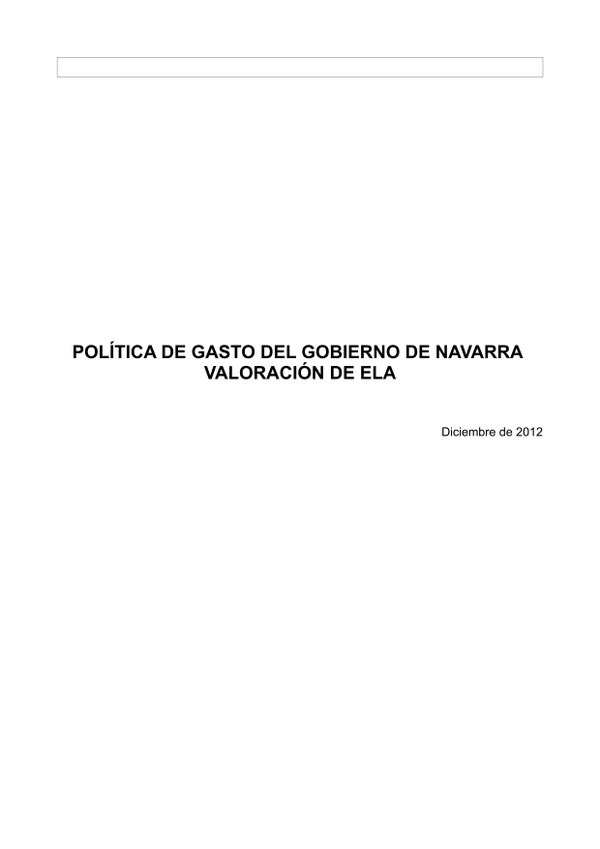 POLÍTICA DE GASTO DEL GOBIERNO DE NAVARRA EN 2013. VALORACIÓN DE ELA