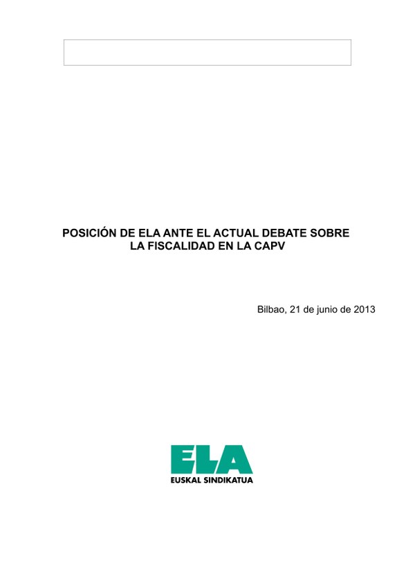 POSICIÓN DE ELA ANTE EL ACTUAL DEBATE SOBRE LA FISCALIDAD EN LA CAPV