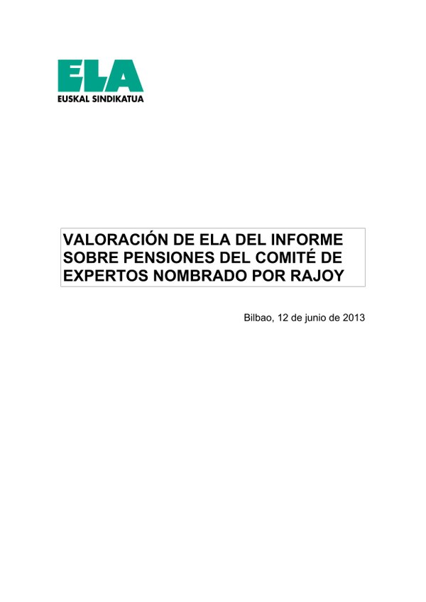 INFORME SOBRE PENSIONES DEL COMITÉ DE EXPERTOS NOMBRADO POR RAJOY