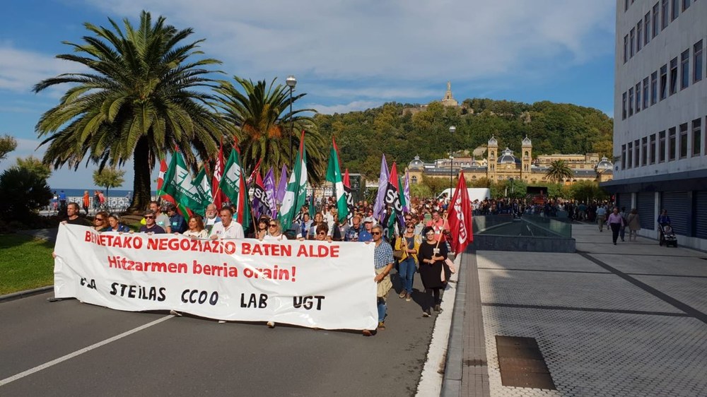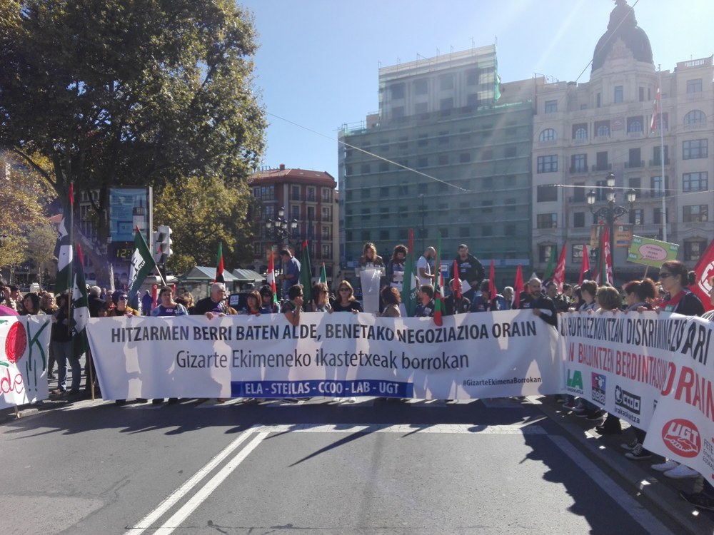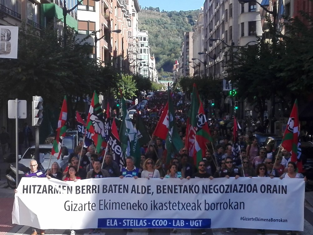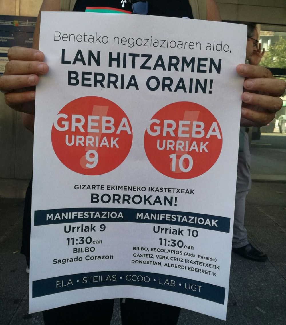 Dando continuidad a los tres días de huelga del pasado curso, el seguimiento de las huelgas del 9 y 10 de octubre ha sido muy amplio en los centros de Iniciativa Social, superando el 65%. Los representantes de los sindicatos ELA, STEILAS, CCOO, LAB y UGT han subrayado que si las patronales del sector, Kristau Eskola y AICE-IZEA no ponen encima de la mesa de negociación contenidos significativos, las movilizaciones de los/as trabajadores/as seguirán con 4 días de huelga en noviembre. Ésta es la galería fotográfica de los dos días de huelga en Bilbao, Donostia y Gasteiz.