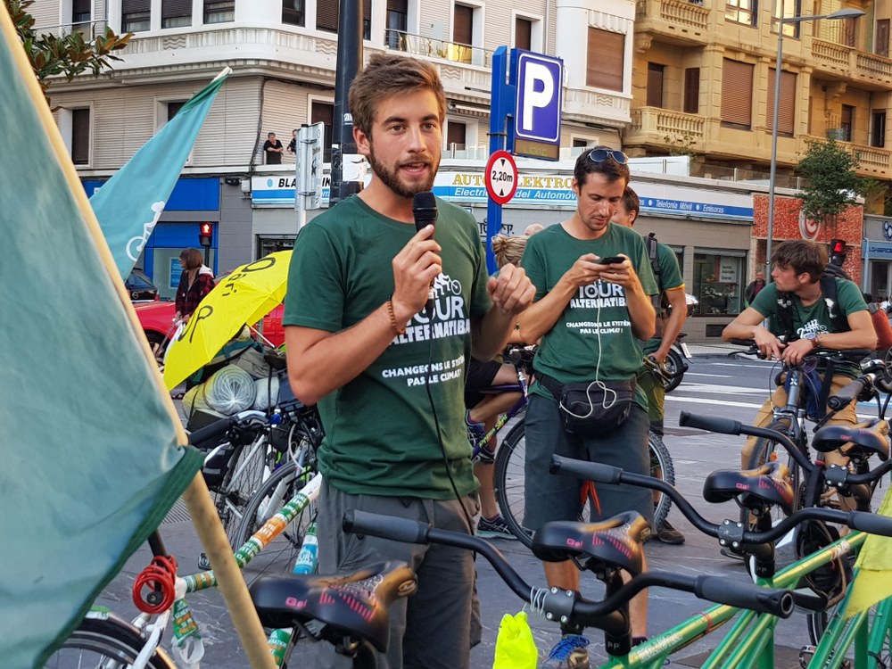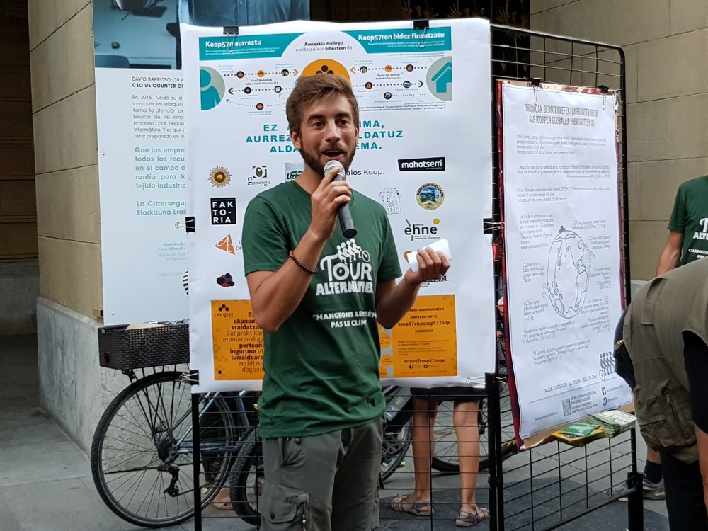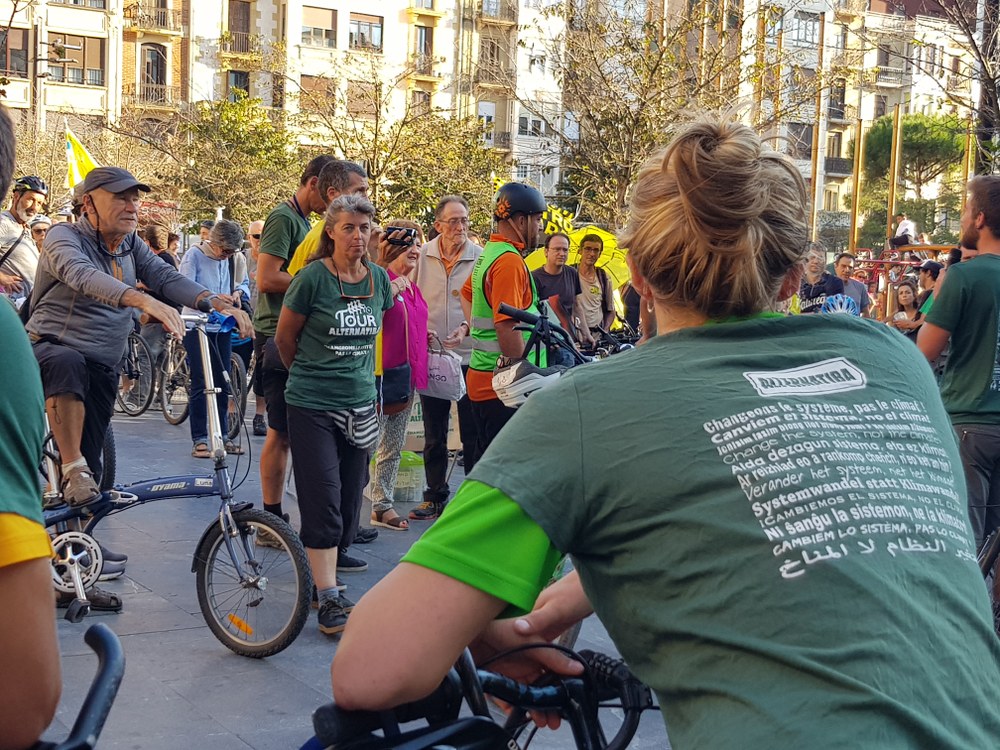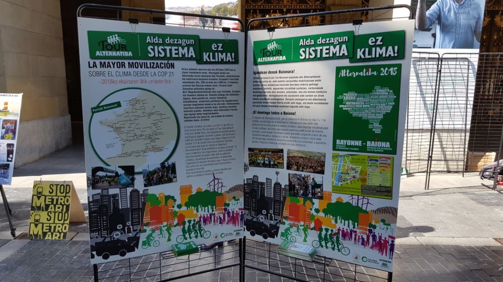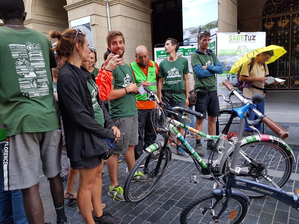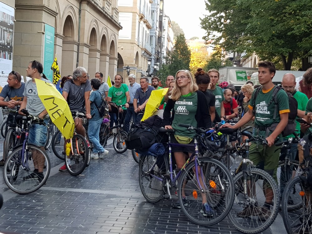 El 5 de octubre, el Tour Alternatiba ha llegado a Donostia tras haber recorrido 5.800 km en bicicleta para denunciar el cambio climático, bajo el lema `¡Cambiemos el sistema, no el clima!´ El Tour Alternatiba salió el 9 de junio desde Paris y es una nueva forma de movilización que ha venido reuniendo en cada una de las 200 etapas realizadas durante cuatro meses a través de 5 países a los movimientos locales que luchan contra proyectos nocivos y construyen alternativas reales. Desde primera hora de la mañana, movimientos sociales han mostrado diferentes alternativas en la plaza Gipuzkoa.