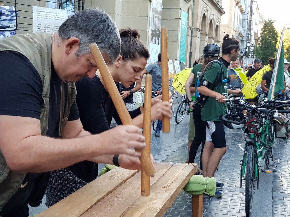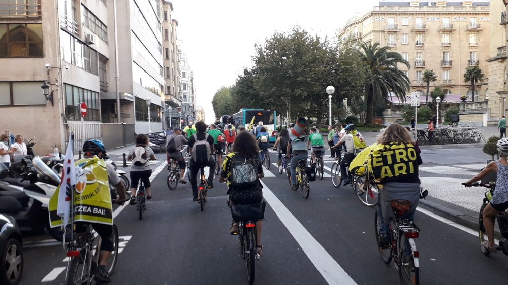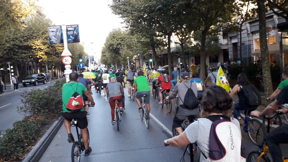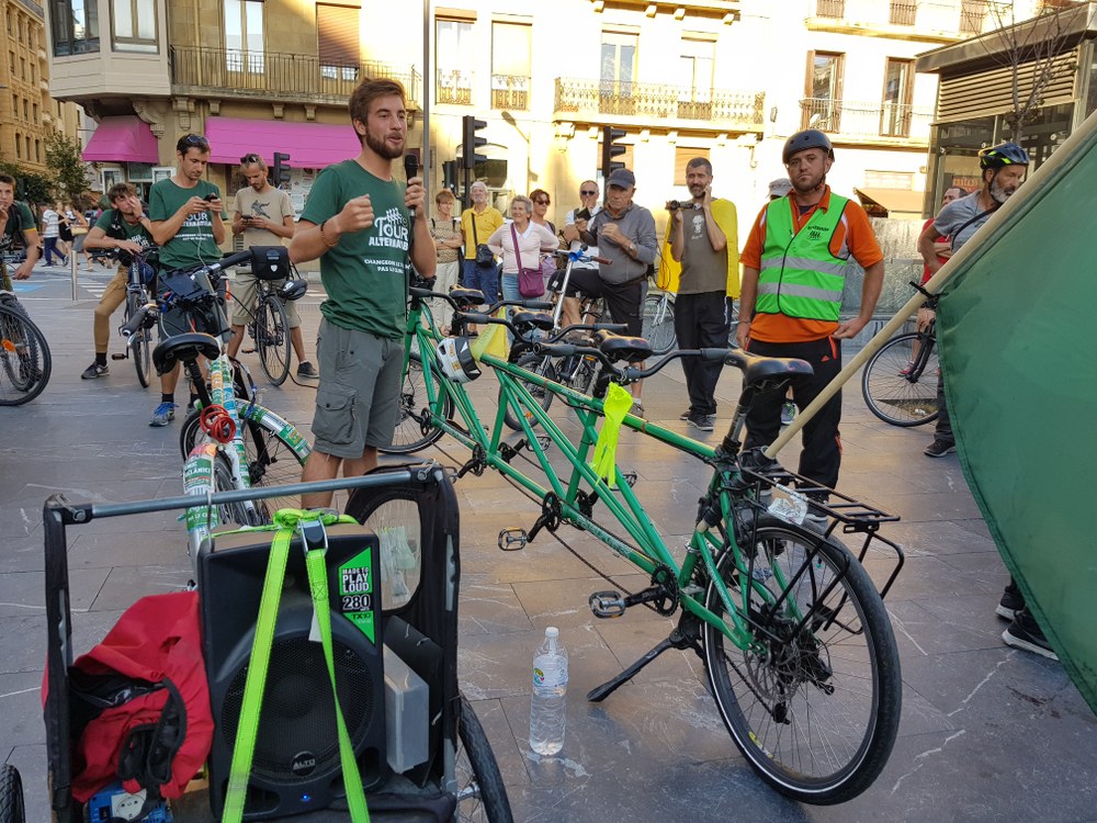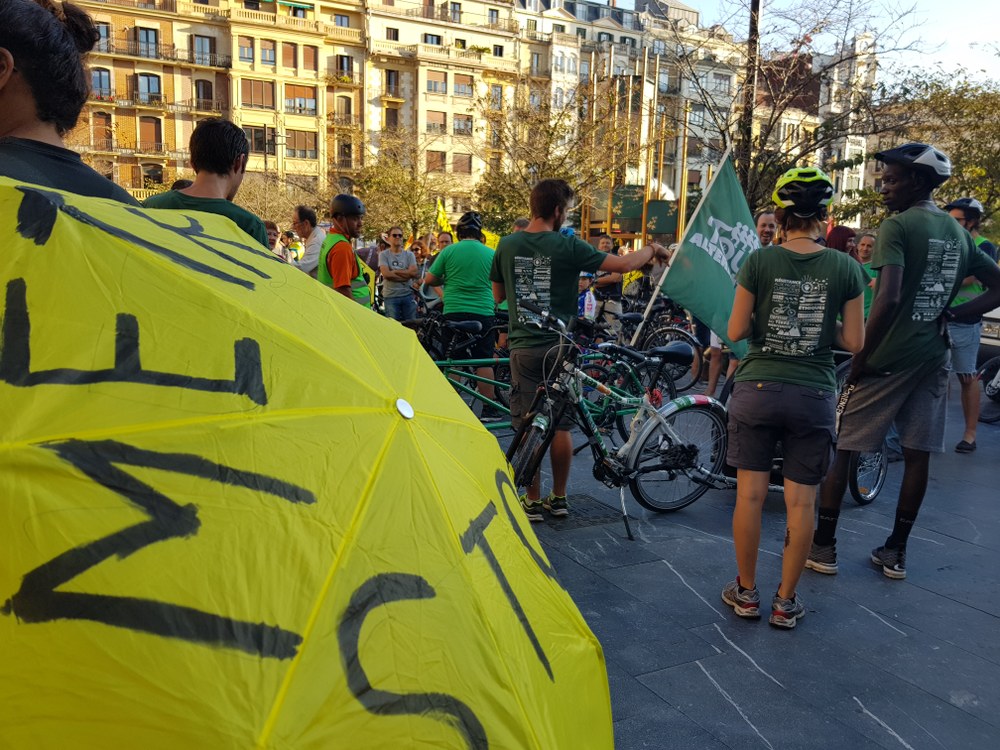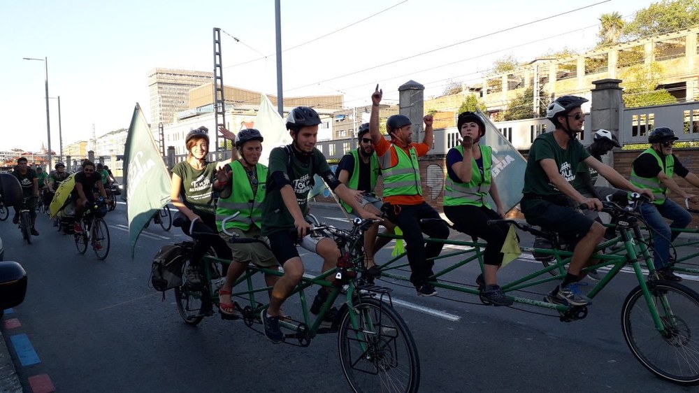 El 5 de octubre, el Tour Alternatiba ha llegado a Donostia tras haber recorrido 5.800 km en bicicleta para denunciar el cambio climático, bajo el lema `¡Cambiemos el sistema, no el clima!´ El Tour Alternatiba salió el 9 de junio desde Paris y es una nueva forma de movilización que ha venido reuniendo en cada una de las 200 etapas realizadas durante cuatro meses a través de 5 países a los movimientos locales que luchan contra proyectos nocivos y construyen alternativas reales. Desde primera hora de la mañana, movimientos sociales han mostrado diferentes alternativas en la plaza Gipuzkoa.
