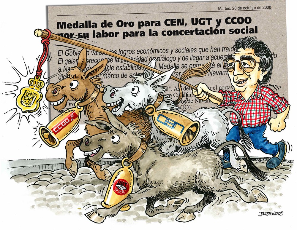 En 2008 el Gobierno presidido por Miguel Sanz entregó la Medalla de Oro de Navarra –principal condecoración de la Comunidad Foral– a UGT, CCOO y CEN. A comienzos del 2017 Diario de Noticias desveló los papeles que demostraban lo que ELA llevaba años denunciando: la financiación irregular y fraudulenta de las estructuras de UGT, CCOO y la CEN por los distintos gobiernos de UPN. ELA exigió la disolución inmediata del Consejo de Diálogo Social y la creación de una comisión de investigación que sirva para depurar responsabilidades políticas por lo sucedido. Han pasado años, décadas, pero el modelo de concertación social navarro sigue funcionando para mayor gloria del Gobierno, la patronal y los sindicatos UGT y CCOO. El reciente acuerdo sobre el Plan de Empleo 2025-28 es el último ejemplo. Por desgracia, parece que no será el último.