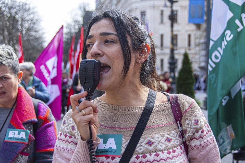 [Amaia Muñoa]: En Euskal Herria, las políticas neoliberales impuestas durante décadas han empeorado las condiciones de trabajo y de vida, y al tiempo que han aumentado los beneficios de las empresas se han reducido los salarios y el poder adquisitivo de las trabajadoras y los trabajadores. La pobreza y la exclusión social están cada vez más extendidas y son las mujeres y las personas migradas las que sufren las consecuencias más graves. Por ejemplo, la tasa de pobreza de las mujeres es significativamente mayor que la de los hombres y la tasa de pobreza entre las personas migrantes es nueve veces mayor que la del resto de la población.