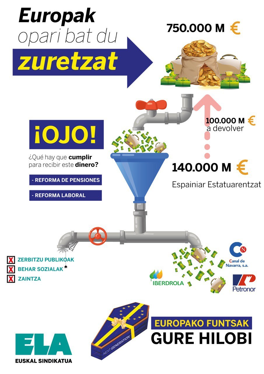Por todo ello, y ante el instrumento de dominación que suponen los fondos europeos, ELA ha exigido una reforma fiscal.