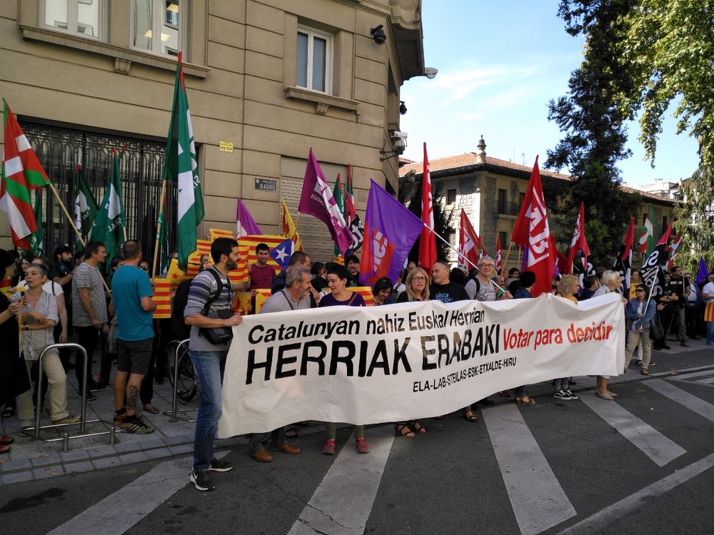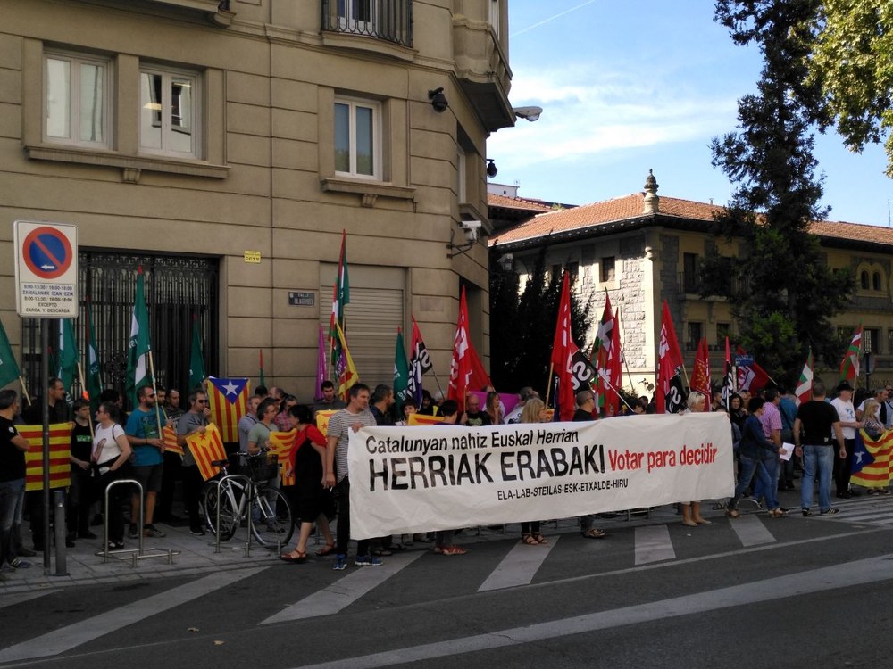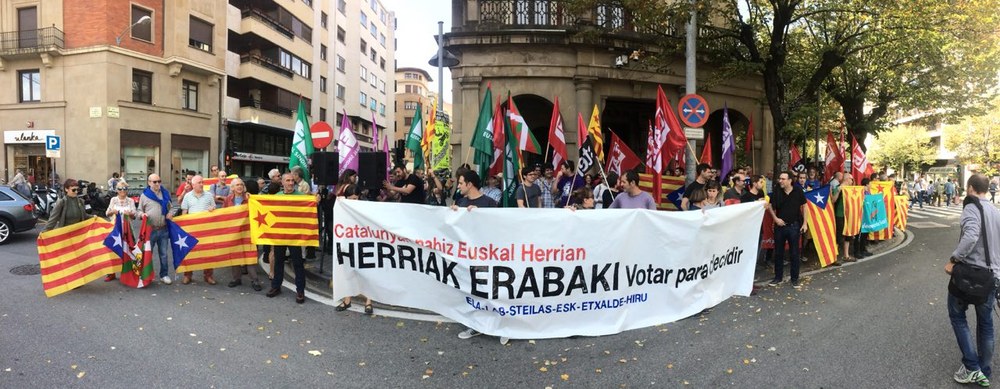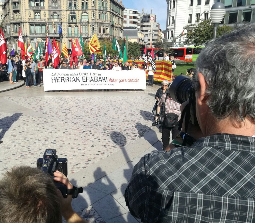 Para mostrar el apoyo al referéndum de Cataluña, se han realizado diversas concentraciones en las capitales de Hego Euskal Herria.