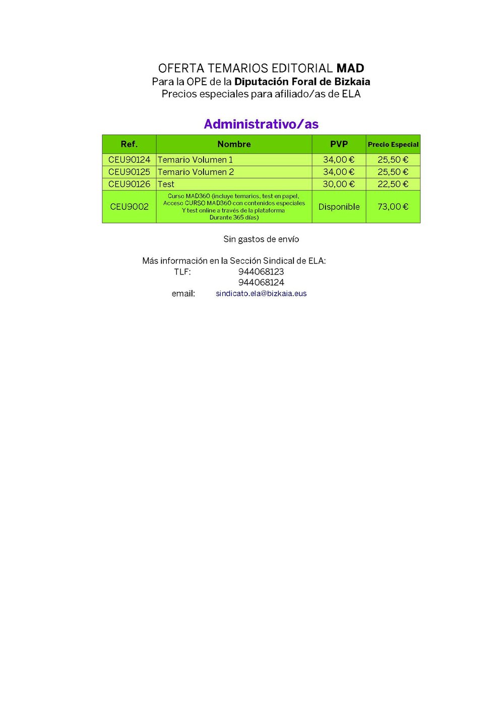Temarios para la OPE de Administración de la Diputación Foral de Bizkaia
