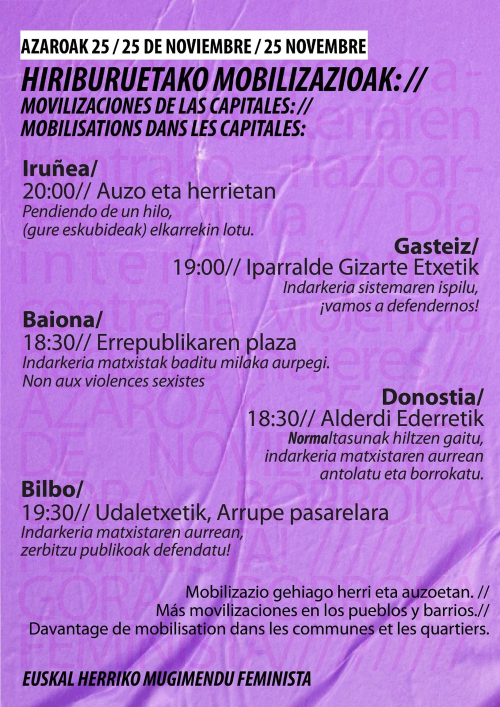 Azkenik, EHko mugimendu feministak deitutako manifestazioetan parte hartzera deitu dute.