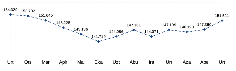 Langabeen kopurua iazko martxoko mailara iritsi da dagoeneko. Egoera larriagotu egin da, laugarren hilabetez jarraian igo baita langabezia. Halaber, ekainetik hona izan den bilakaerari erreparatzen badiogu, ikus dezakegu 10.000 langabe gehiago daudela HEHn.