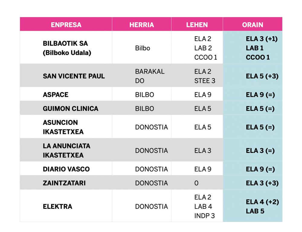 Hauteskunde sindikaletan buru-belarri murgilduta, ELA emaitza onak lotzen ari da eskualdez eskualde.