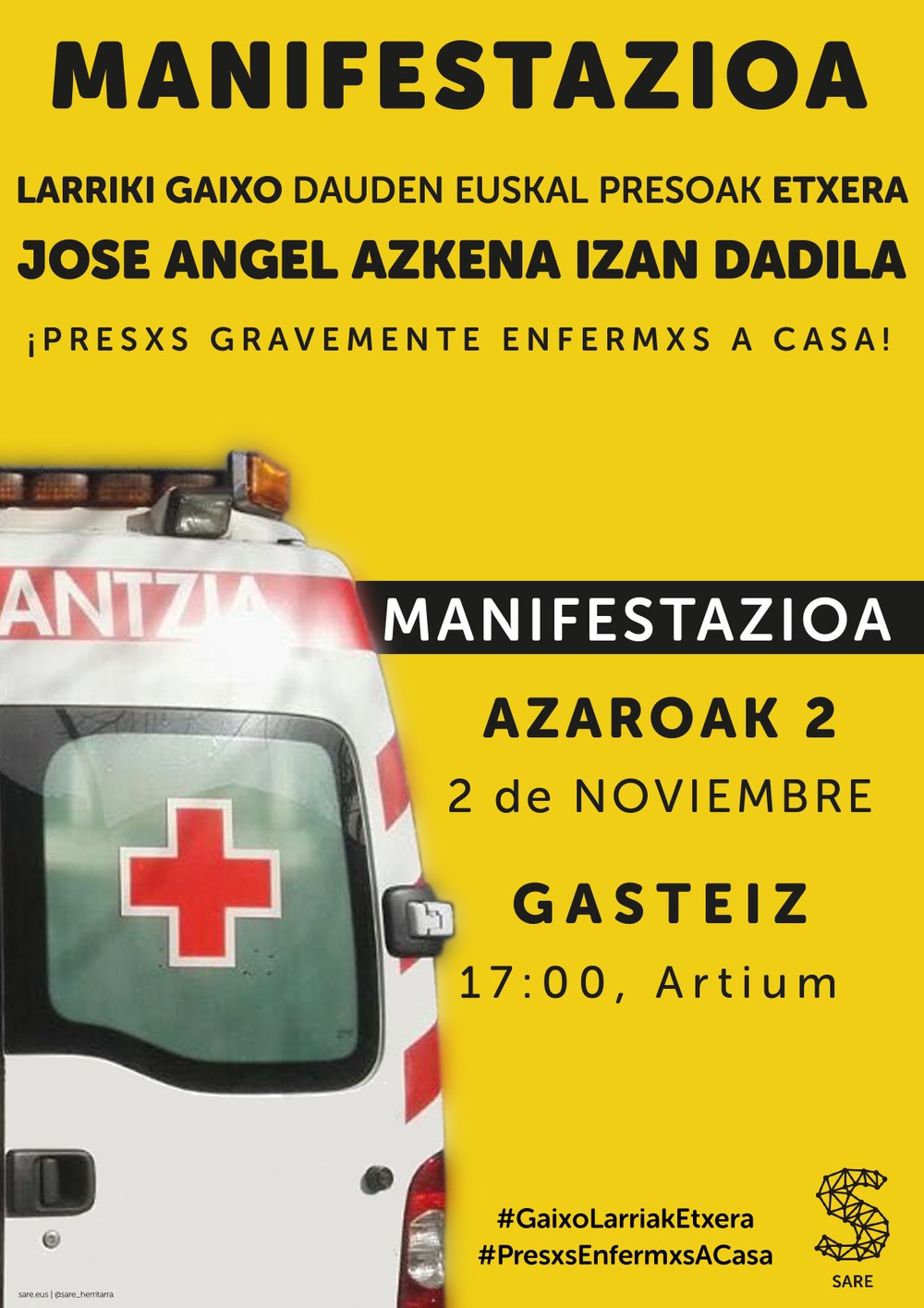ELAk dei egin du larunbatean, azaroak 2, Gasteizen Sare mugimenduak deitu duen manifestazioan parte hartzera, atzo, urriak 30, hil zen Jose Angel Otxoa de Eribe presoak pairatu duen espetxe-politika ankerra salatzeko.