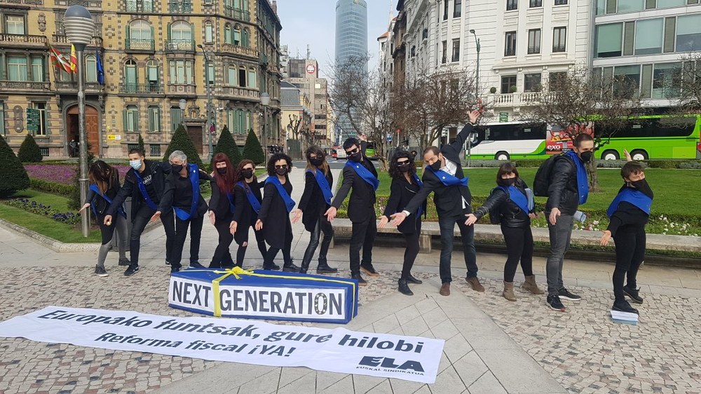 ELAk ekimen ikusgarria egin du Bilboko kaleetan zehar Europako Funtsen iruzurra salatzeko. Hainbat lagunek hilkutxa bat besoetan hartu eta hiriko kale nagusiak zeharkatu dituzte, hiru geldialdi eginez: Eusko Jaurlaritzan, Gobernuaren Ordezkariordetzan eta Iberdrola Dorrean. Ekimen honekin honakoa salatu nahi izan da: Europako funtsak estutu bat gehiago dira larrialdira ekarri gaituen eredu honetan. Next Genera- tion oparia hilkutxa da hurrengo belaunaldientzat.