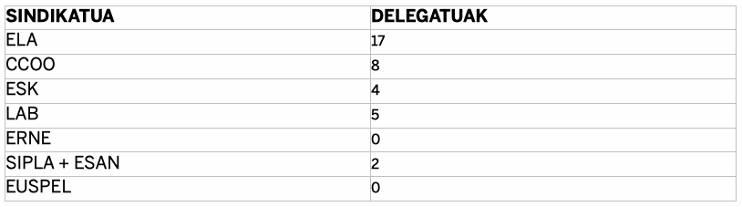 Atzoko emaitzak eta gero, eta Udaleko langile laboralei dagozkien delegatuak batuz gero, Gasteizko Gobernuan guztira dauden 36 delegatuetatik 17 dira ELAkoak; %47,2, alegia. CCOOk 8 ditu, LABek 5, ESKk 4 eta SIPLAk + ESANek 2. ErNEk eta Euspelek ez daukate delegaturik.