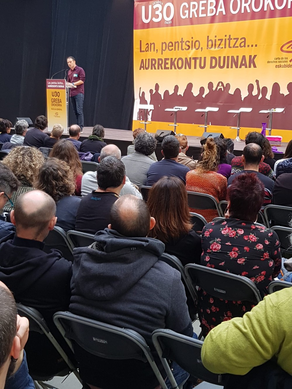 Azkenik, ELAko idazkari nagusiak greba horren beharra eta arrazoiak gizarteratzeko deia egin die bertaratutakoei, urtarrilaren 30eko greba orokorra lan, pentsio eta bizitza duin baten aldeko aldarria izan dadin.