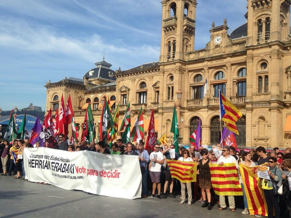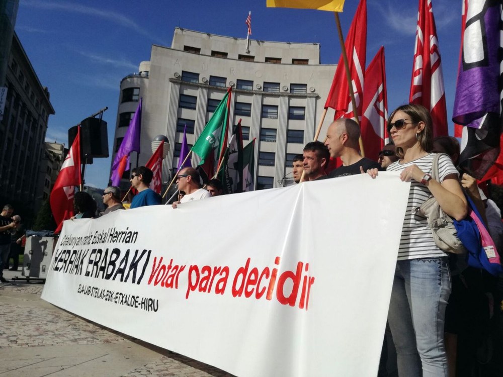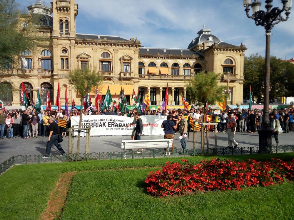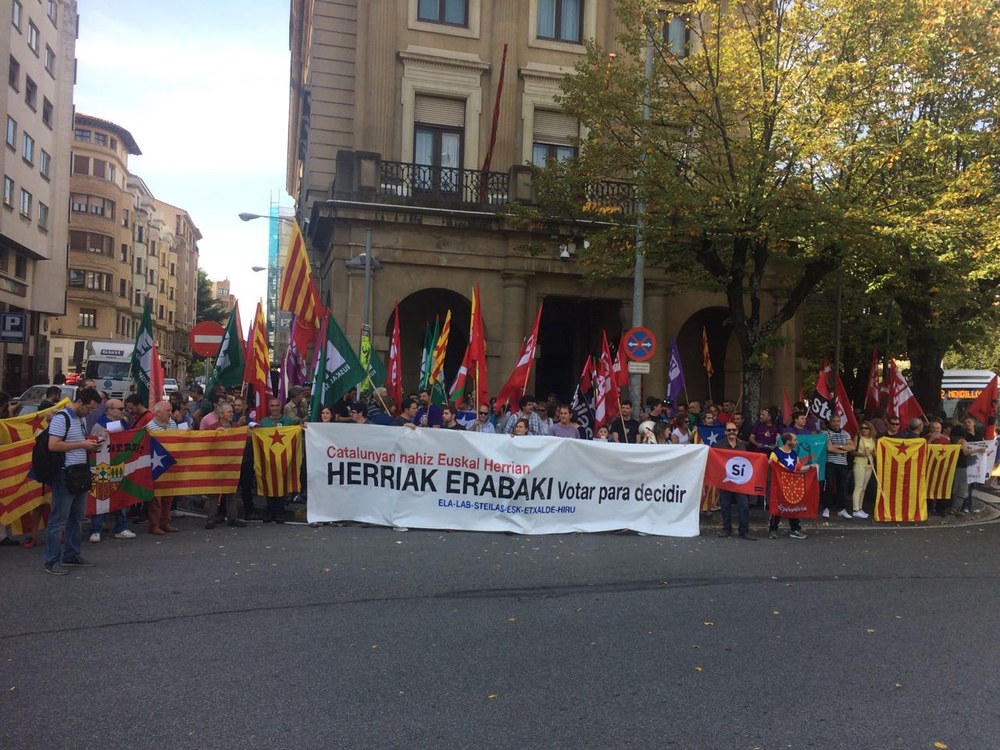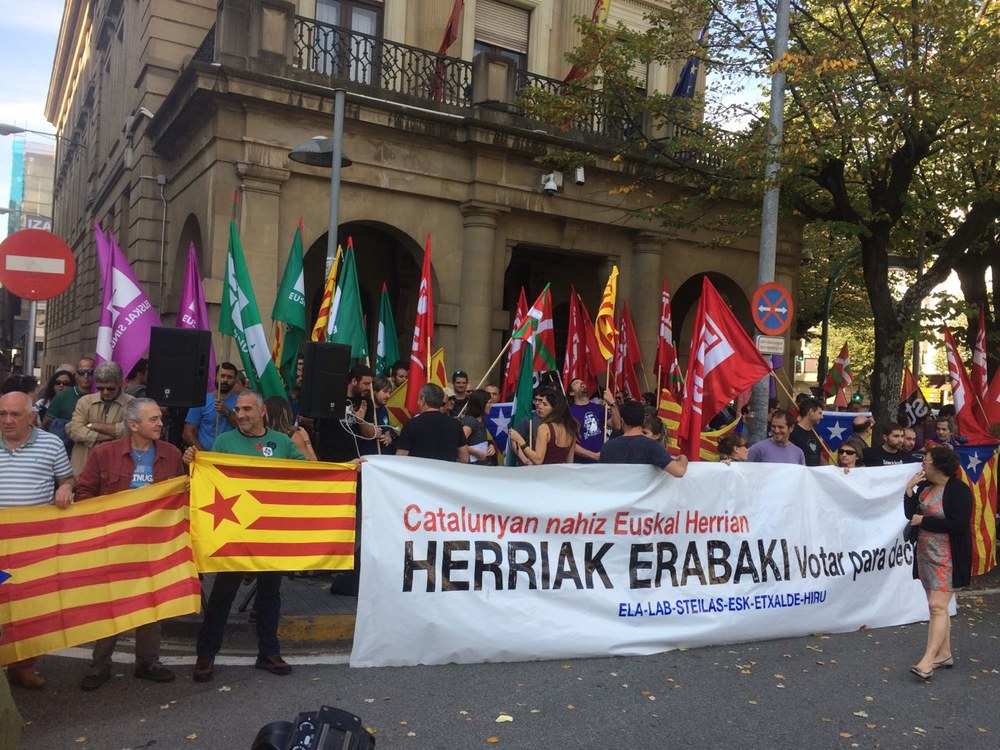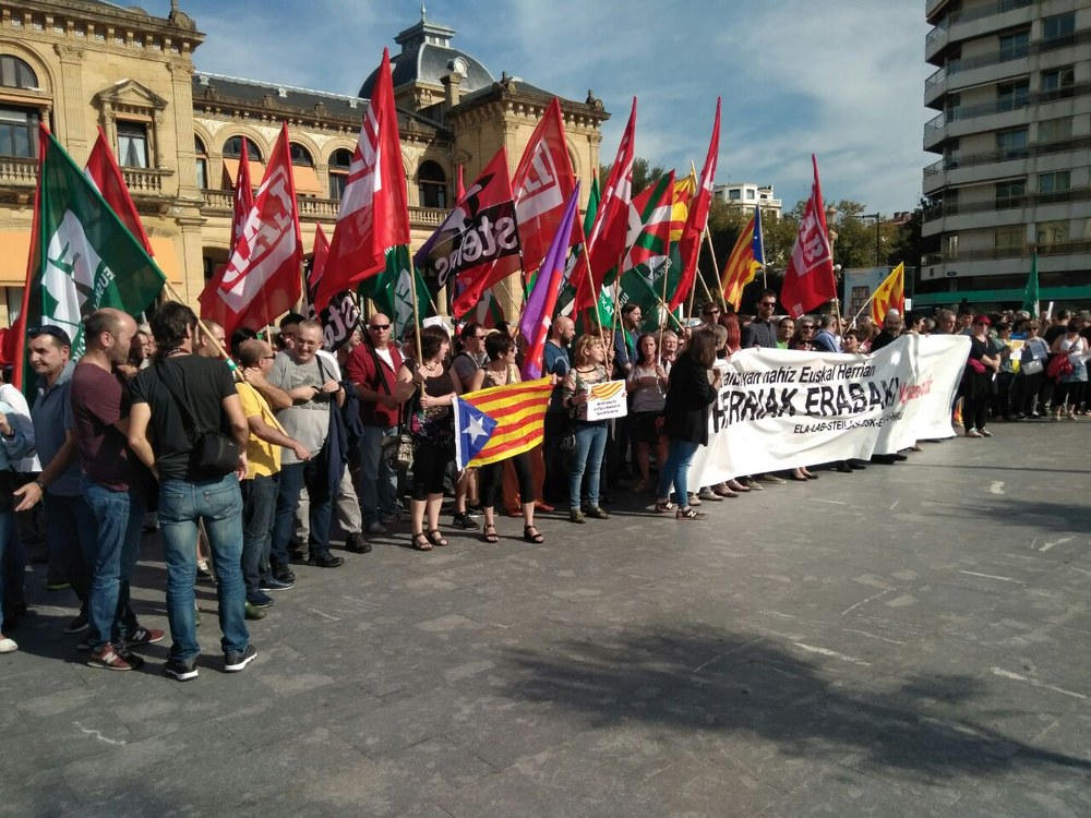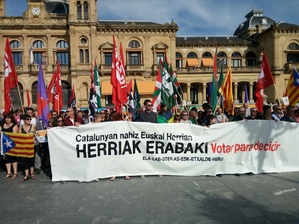 Kataluniako erreferendumari babesa erakusteko, gehiengo sindikalak deituta Hego Euskal Herriko hiriburuetan bilkurak egin dira.