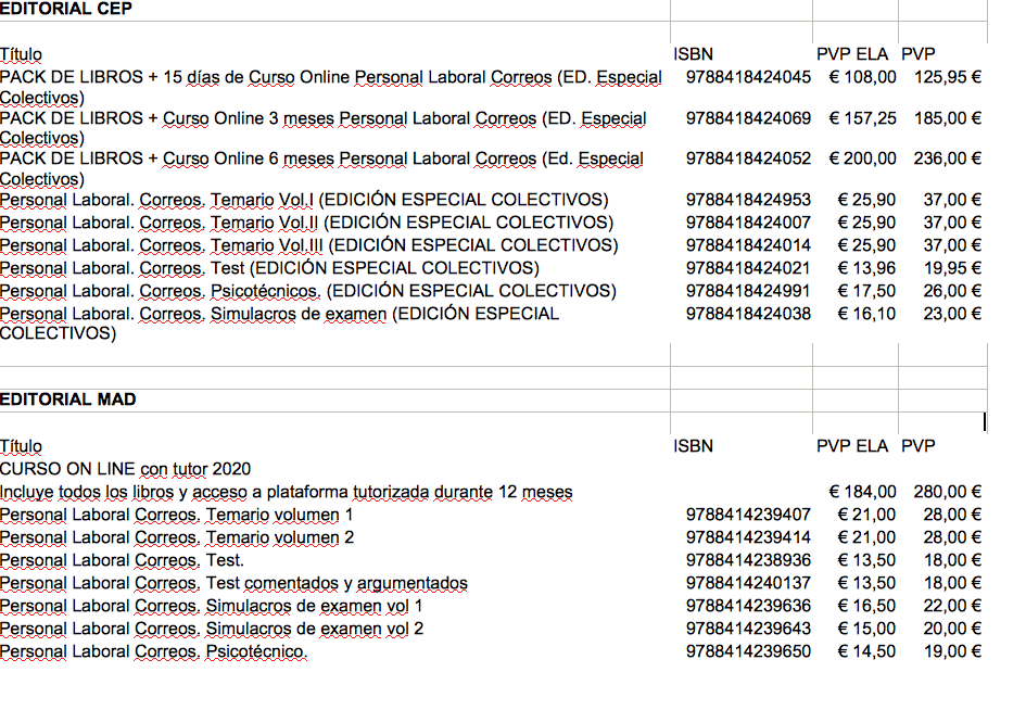 Gure afiliatuen prestakuntza erraztearren, ELAk deskontu bat adostu du bi argitaletxerekin oposizioetarako gaitegietan. Beraz, ELAko afiliatuek %30eko deskontua izango dute CEPen kasuan, eta %25eko deskontua MADen. Bi argitaletxe horiek CORREOSen EPErako argitaratuko dituzten gaitegi guztietan aplikatuko dira esandako deskontuak.