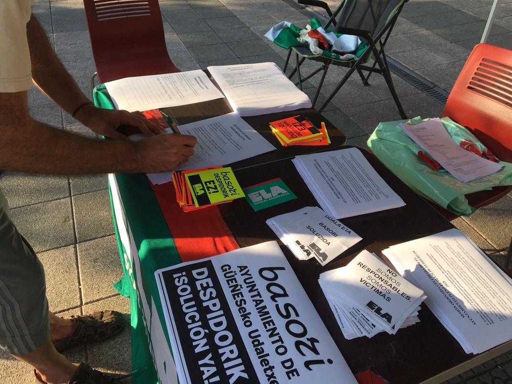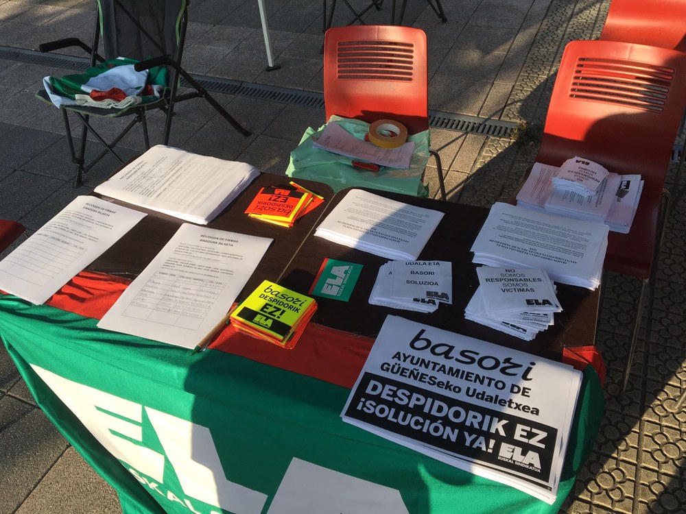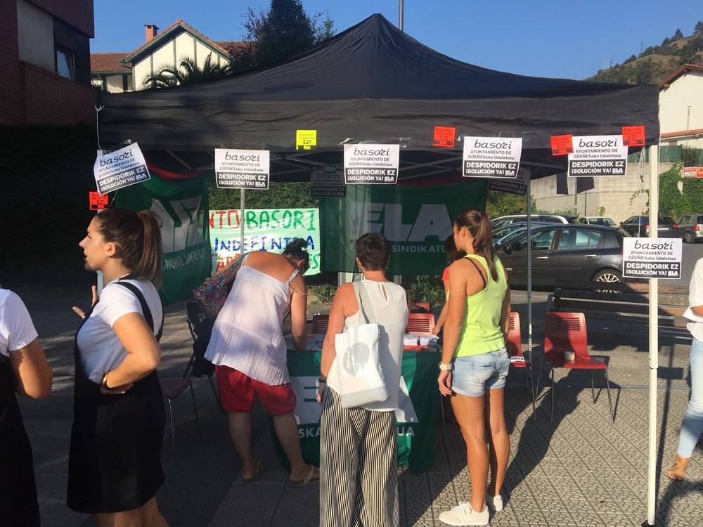 Gueñesko Udalari zerbitzu ematen dion Basoriko langileak kalera irten dira. Irailaren 30ean gerta daitezkeen kaleratzeen berri emateko karpa jarri eta herritarren babesa jaso dute. Sodupeko Udal bulegoen alboan jarritako informazio puntuan izango dira gaur eta bihar, goizeko 9:00-21:00 bitartean, herritarren babesa eta sinadurak jasotzen.