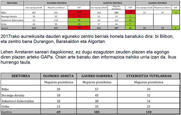 Ikuspegi ilun horren aurrean, BFAk giroa baretu guran, bost “eguneko zentro” 2017an zehar inauguratuko dituela iragarri du, eta asteko zazpi egunetan irekita egongo direla. Azken datu horrekin ezkutatu nahi dute sektorean hainbat urtetatik hona galdu den enplegua, eta datozen hilabeteetan galduko dena. Ez alferrik BFAk berak esaten du badaudela erakundeak egokitu gabeko edo balio gabeko jarduerak dituztenak, eta aldiz eredu berrian prestaturiko profesionalak behar direla.