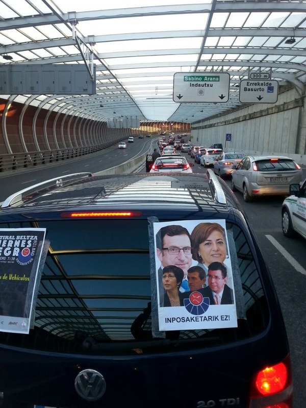 Hau guztiak mobilizazioekin jarraitzera daramatza, eta horrela bada, gaur, maiatzak 14, ibilgailuak hartuta, aldarrikapen ibilaldia egin dugu Bizkaiko errepidetan zehar ondorengo goiburupean “INPOSAKETARIK EZ, NEGOZIAZIOAREN ALDE”