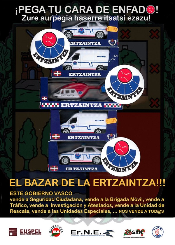 Gaur, Ertzaintzaren erakunde sindikalok, ErNE, ESAN, ELA, SIPE eta EUSPEL-ek, Eusko Jaurlaritzako Segurtasun Sailaren inposaketen aurkako protesta eta presio ekintzekin jarraitzea erabaki dugu.