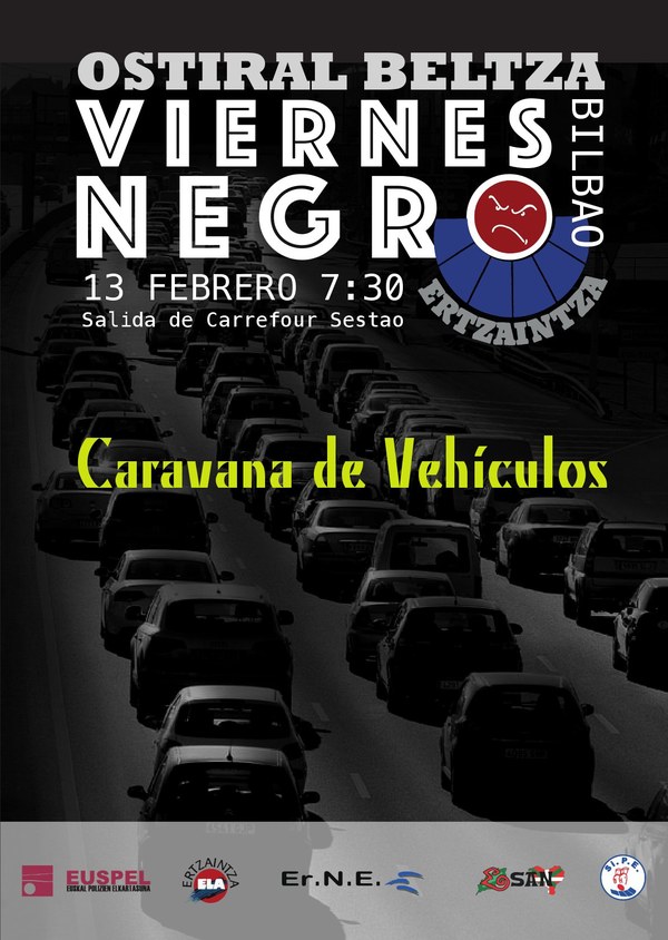 Gaur, ELA, SiPE eta EUSPEL sindikatuek, Gasteizko kaleetatik ibilgailuekin ibilaldi bat egin ondoren Legebiltzarraren aurrean elkartaratu gara. Ordu berean Segurtasun Sailburuak, bere eskariz, azaltzen zuen Uztailaren 29an iluntasunez eta nagusitasunez egindako bateraketen ustezko onurak zeintzuk diren. Bateratze hauek, asko luzatu gabe, gerora Bizkaian eta Araban egingo direnaren ataria besterik ez direlarik.