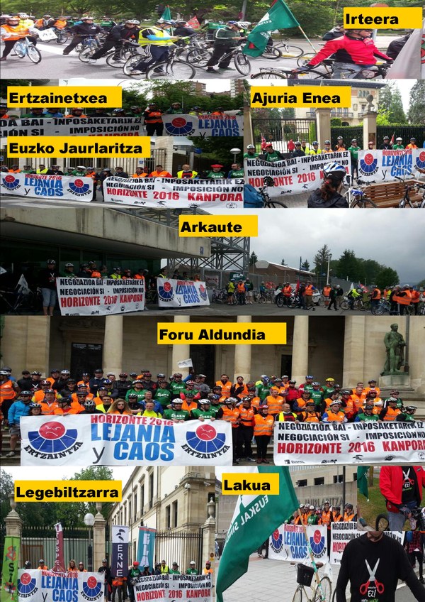 Ertzaintzan ordezkaritza duten sindikatuek — ELA, Erne, Esan, Sipe eta Euspel— “Plan Horizonte 2016” delakoak salatu dute, eta honek ertzainengan berengan ez ezik, gainerako herritarrengan ere eragina izango duela. Dozenaka ertzainak biziketa martxa batean parte hartu dute Gasteizen.