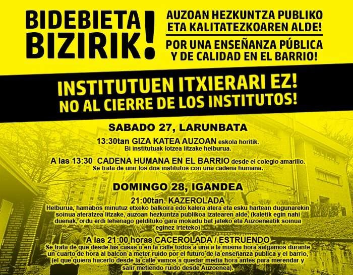 #BidebietaBizirik! Hezkuntza publikoa ez da errentagarria izan behar, denon eskubidea baizik!