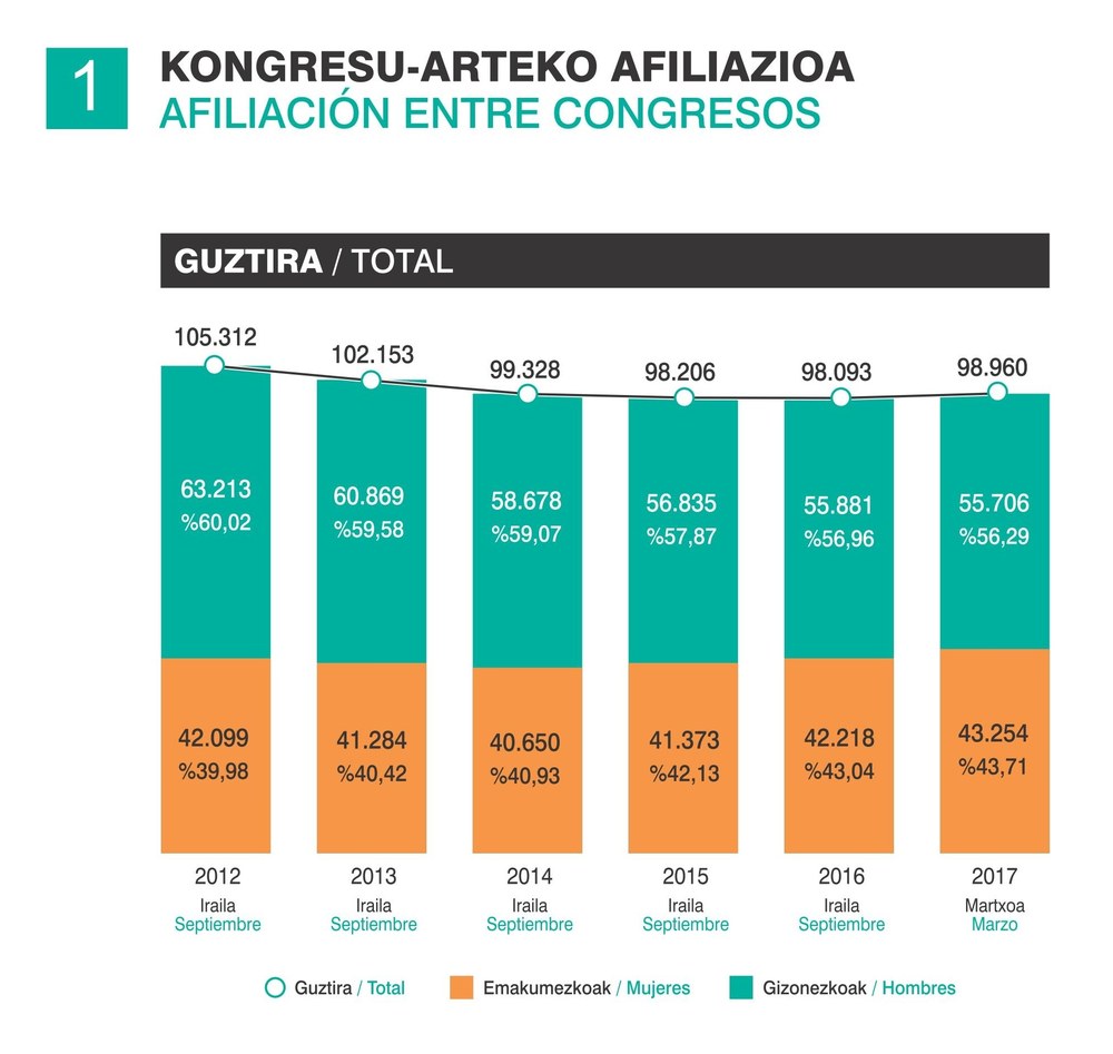 Gardentasunaren eredu izan nahian, ELAk komunikabideetako profesionalak bildu ditu gaur goizean Bilbon, bere afiliazio-datuak denen aurrean egiaztatzeko; eta horrela sindikatuak argitaratzen duen informazioaren zehaztasuna eta egiazkotasuna ziurtatu ahal izan da. ELAk, era berean, kongresuen arteko aldiko (2012 eta 2017 bitartean) afiliazioari buruzko datuak eman ditu jakitera; dena dela datu horiek oso-osorik XIV Kongresuan aurkeztuko ditu, ekainaren 15 eta 16an Bilbon. Gaurko ekitaldian, aipaturiko datuak ematearekin batera, sindikatuaren finantza-egoeraren balantzea ere egin da.
