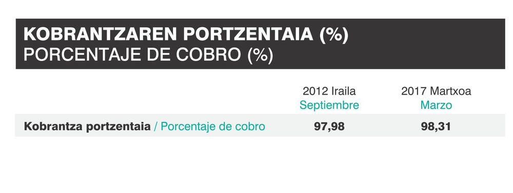 Bestalde, benetako kobrantzaren portzentajea ere hobetu da, %97,98tik %98,31era igo baita.